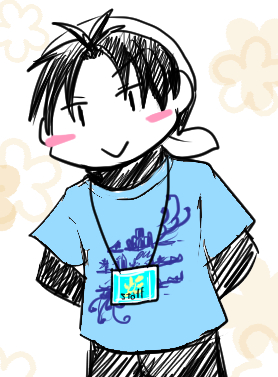 物販のTシャツとは別に、幻水カラーの水色地に紺色のTシャツをスタッフ専用にしました。