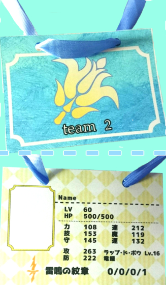 名札の裏にはステータス入り。名前と顔グラは自分で書く仕様でした。