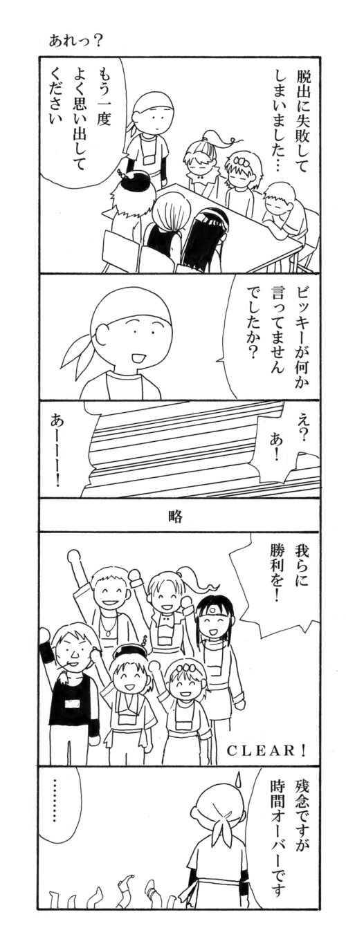 時間内にクリアしたチームのみ脱出成功したという扱いでしたが、全員脱出体験はして頂きました。