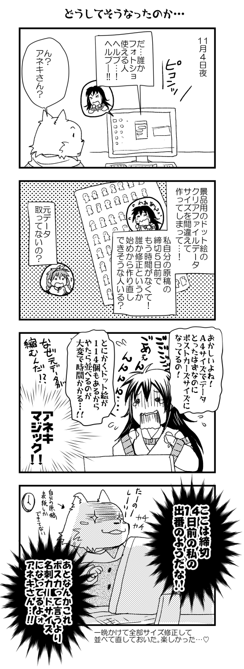 とらこじょ2レポ漫画 その2 ~準備編~ オンリーイベント 2024年06月26日 ※漫画の下に書かれている文章は、主催の補足とツッコミです☆ ※108人+αの大作!ありがとうございました!! ※10年前も、たいへんお世話になりまして…。頼もしかったです! ※一人何役もやってました…。 ※毎回主催の予想を超えることが起きるのですが、これにはハラハラ。 ※イベント準備中、最も笑った出来事でした…。どこ行った、雷。 ※主催の呪い人形への情熱は、ちょっとおかしいですね! ※ひしめく人と物!大人数泊まれる和室が、ぎゅうぎゅうに(笑) >>>即売会編へつづく! PR