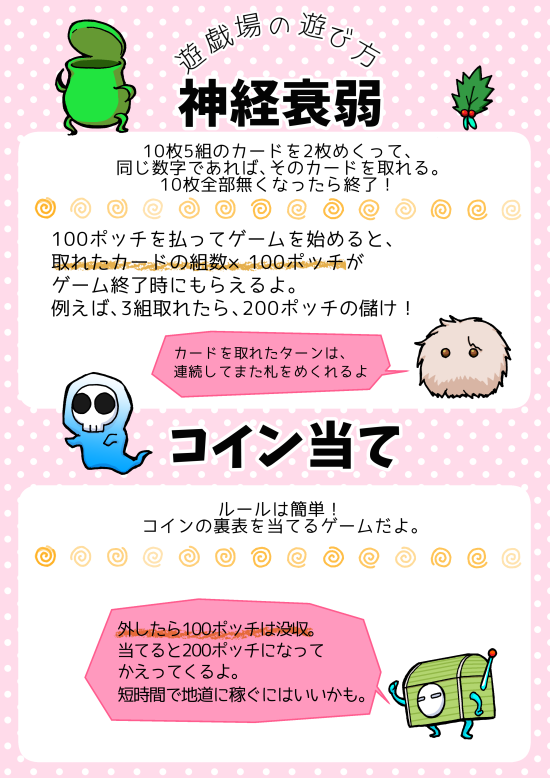 ポッチを賭けて増やすもよし、普通に遊ぶもよし。